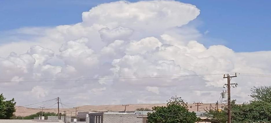 Un enorme banco de nubes se impone en el cielo del Golfo de Santa Clara, la cabecera turística de San Luis Río Colorado.